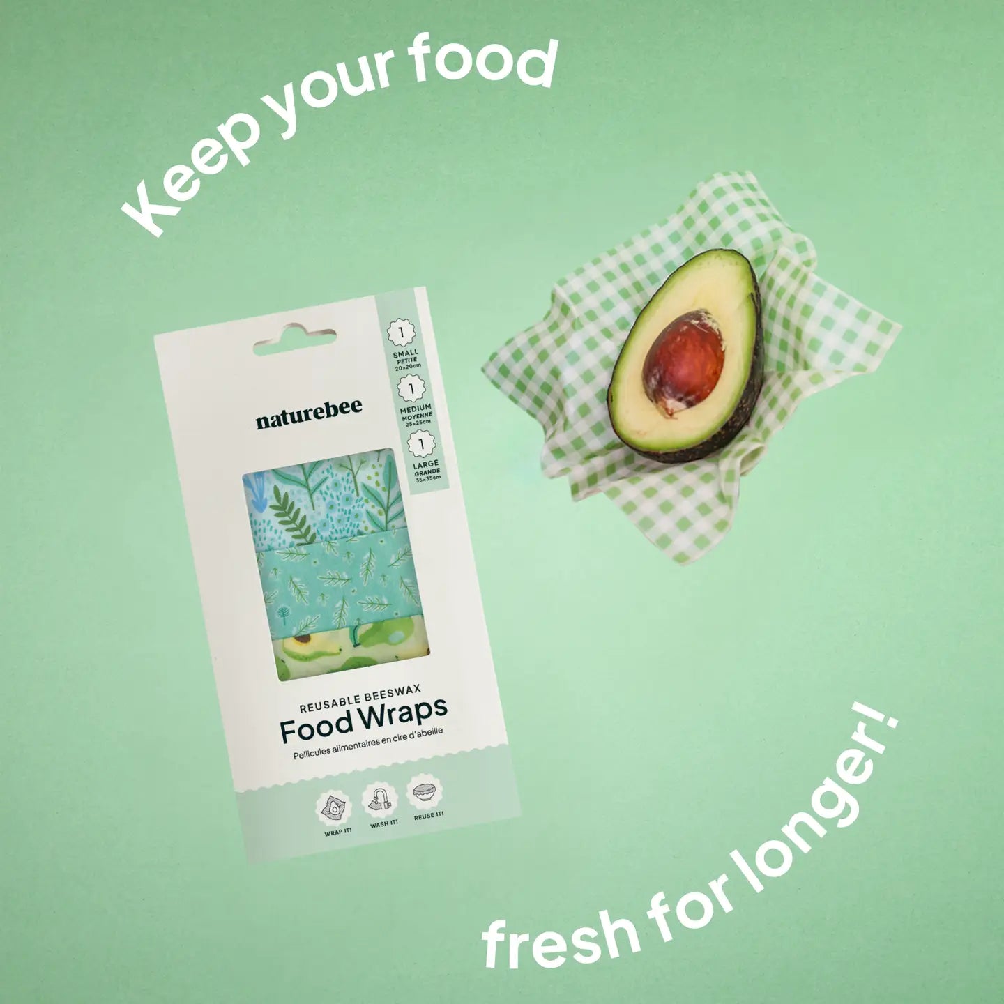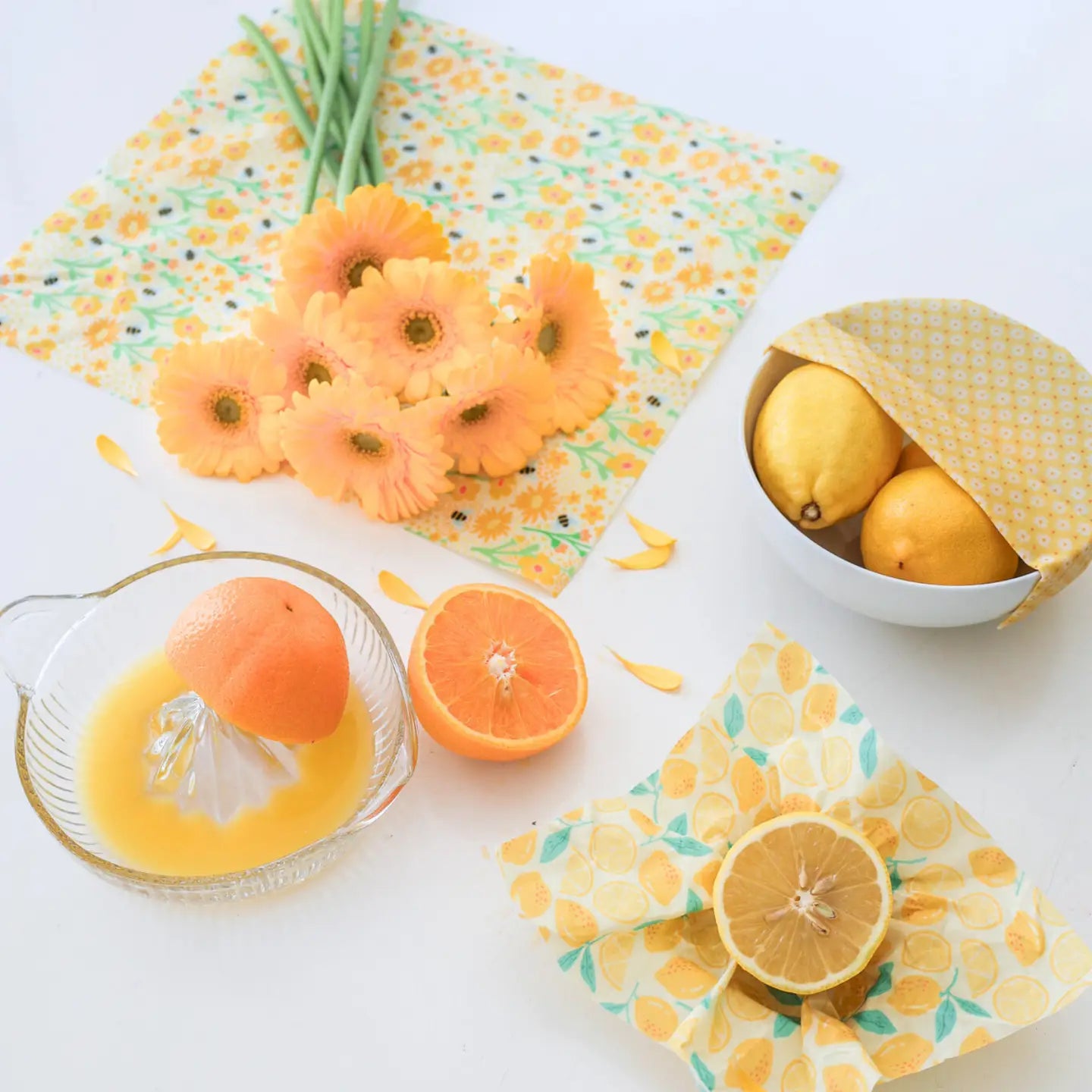 Beeswax wraps are durable & reusable, lasting 9-12 months / up to 300 uses with proper care. They are also sustainable, biodegradable & compostable. Each use helps reduce single-use plastic from entering landfills and oceans. And on top of it all, the cosmetic advantage is that they come in pretty patterns that bring a pop of colour and joy into your kitchen!