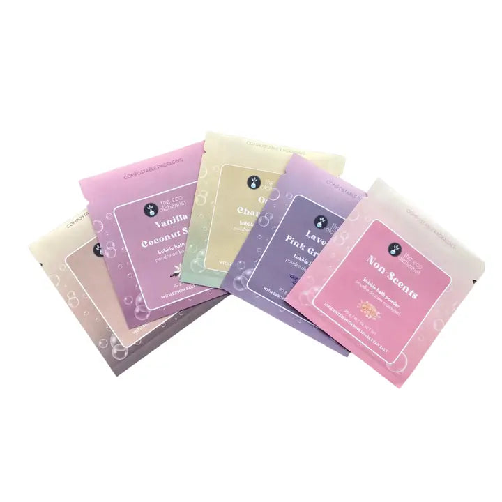 The perfect way for your customers to try our Bubble Bath Powder! Each compostable packet contains the perfect amount of powder to enjoy a super sudsy and luxurious bubble bath. Just add water! They make awesome gifts too.