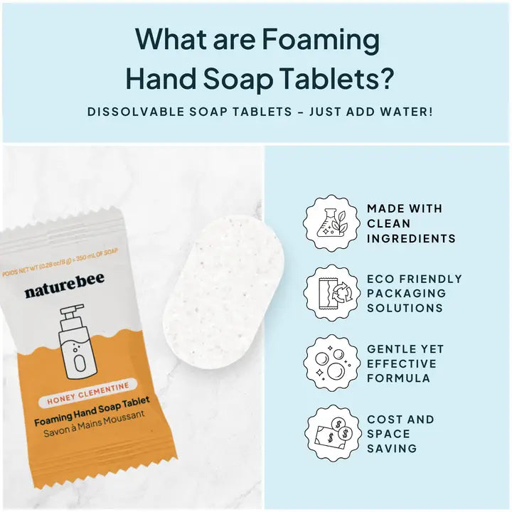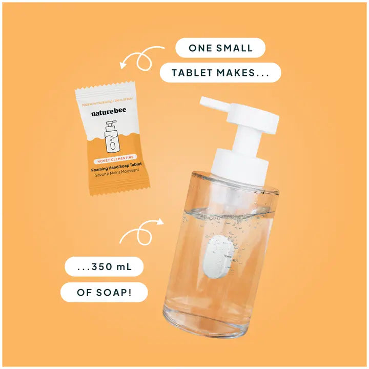 Create a light, airy and foamy hand soap and avoid buying another plastic bottle at the same time! One tab dissolves to create 350-500ml of beautifully scented foaming hand soap!