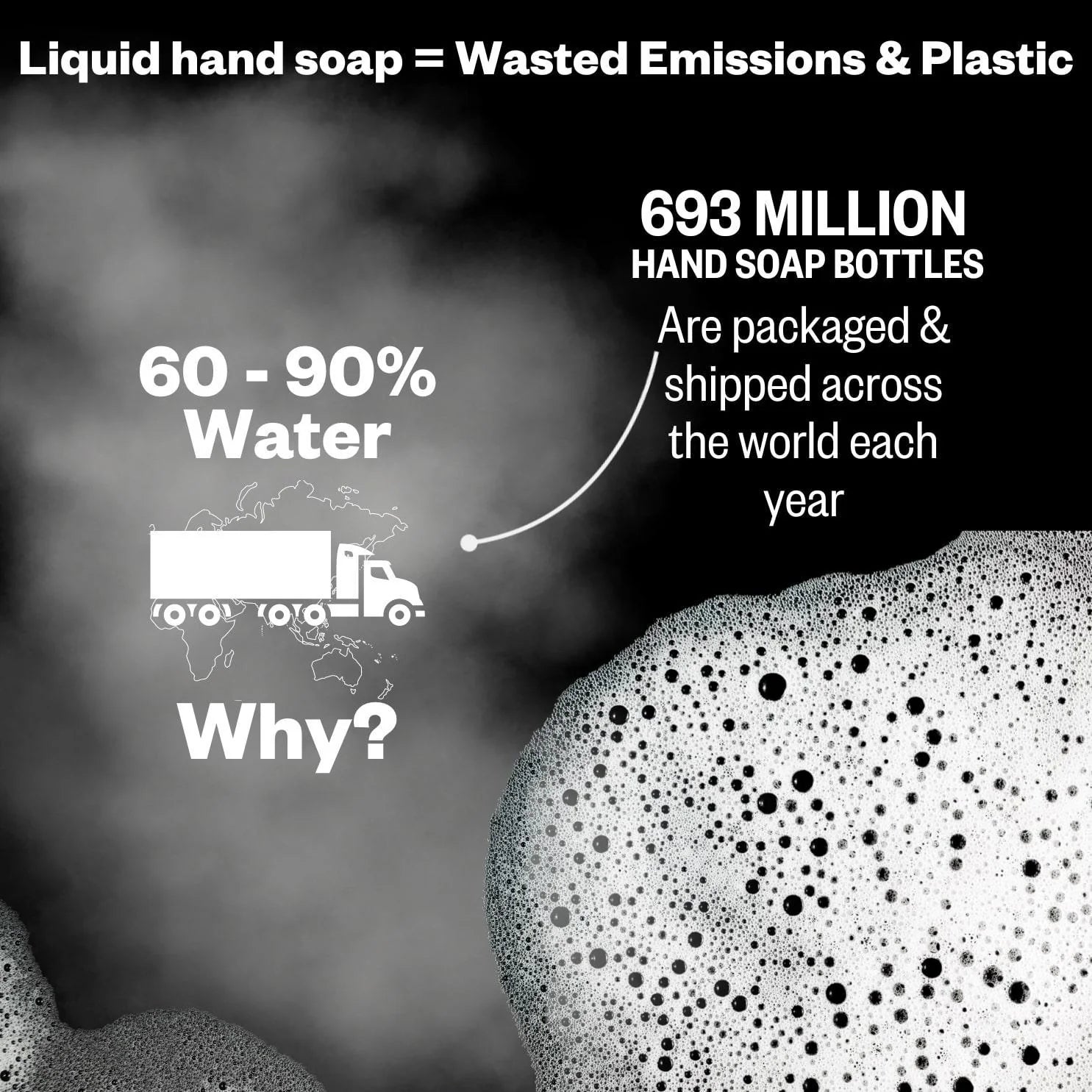 Loved for its ability to effectively clean and foam, our hand soap softens just as well as the leading brands, WITHOUT plastic and the wasted emissions of shipping water. Packaged in our very own (internally developed and manufactured here in Toronto) backyard compostable pods and formulated without artificial foaming agents like SLS, sulphates, and parabens, our lavender lime foaming hand soap concentrate is best in class for washing your hands and cleaning our planet.