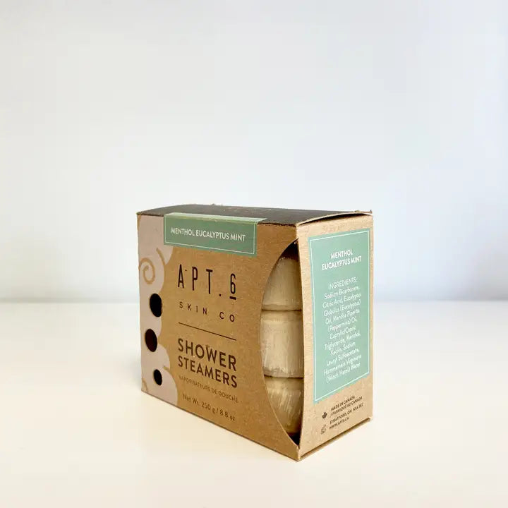 Start your morning on a high note with our invigorating menthol eucalyptus or lemongrass orange shower steamers. Or relax your body and mind before bed or after a long day at work with the gentle scent of lavender and bergamot.