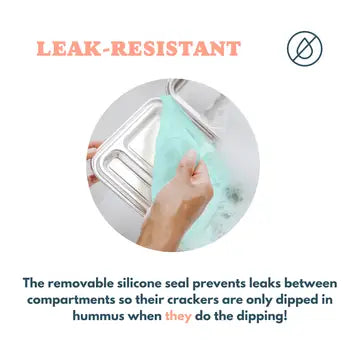 The Explorer™ has an interior removable silicone seal designed to prevent leaks of thicker runnier foods within the lunch box. Parent's and caretaker can pack cottage cheese, yogurt, hummus, etc right in the lunch box. For super runny foods like the juice from fruits or those with water-like consistency should use the side scoops OR add a thin paper towel to the base of the compartment to pack such items.