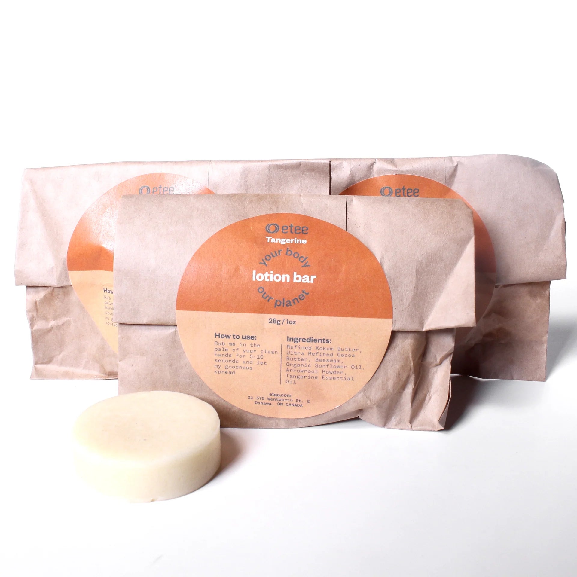 Crafted with only six natural ingredients, these hand lotion bars effectively moisturize dry skin. Some customers report improvements in the condition of ragged cuticles, even in challenging conditions like frequent hand washing or exposure to cold weather. The tangerine hand lotion bar melts into the skin without leaving a greasy residue, keeping their skin soft and smooth for extended periods between applications. Our portable, convenient bar in a metal tin makes it easy to travel with.