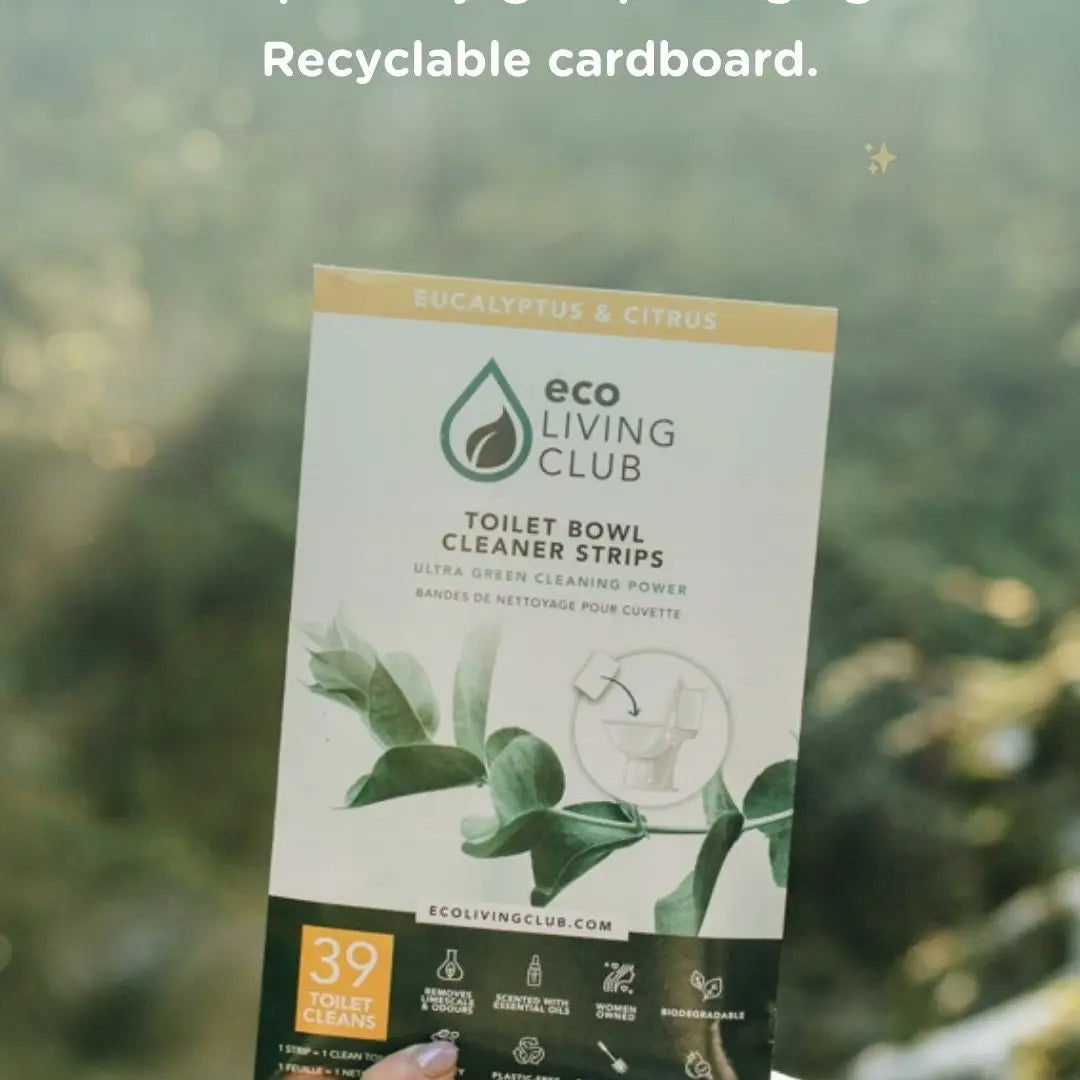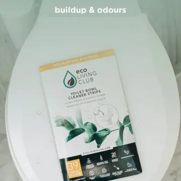 Powerful clean on the toughest stains. Say goodbye to limescale & odours. Makes toilet bowl stains disappear. Scented with essential oils only (Eucalyptus & citrus). Plastic-free packaging. Compact 100% recyclable packaging. Leaving your toilet bowl deodorized with a nice scent. Septic tank / Grey water friendly. 100% Biodegradable. Free of bleach & chlorine. Vegan & Cruelty-free. Mess-free & perfectly portioned. One Strip = One Clean Easy to use!